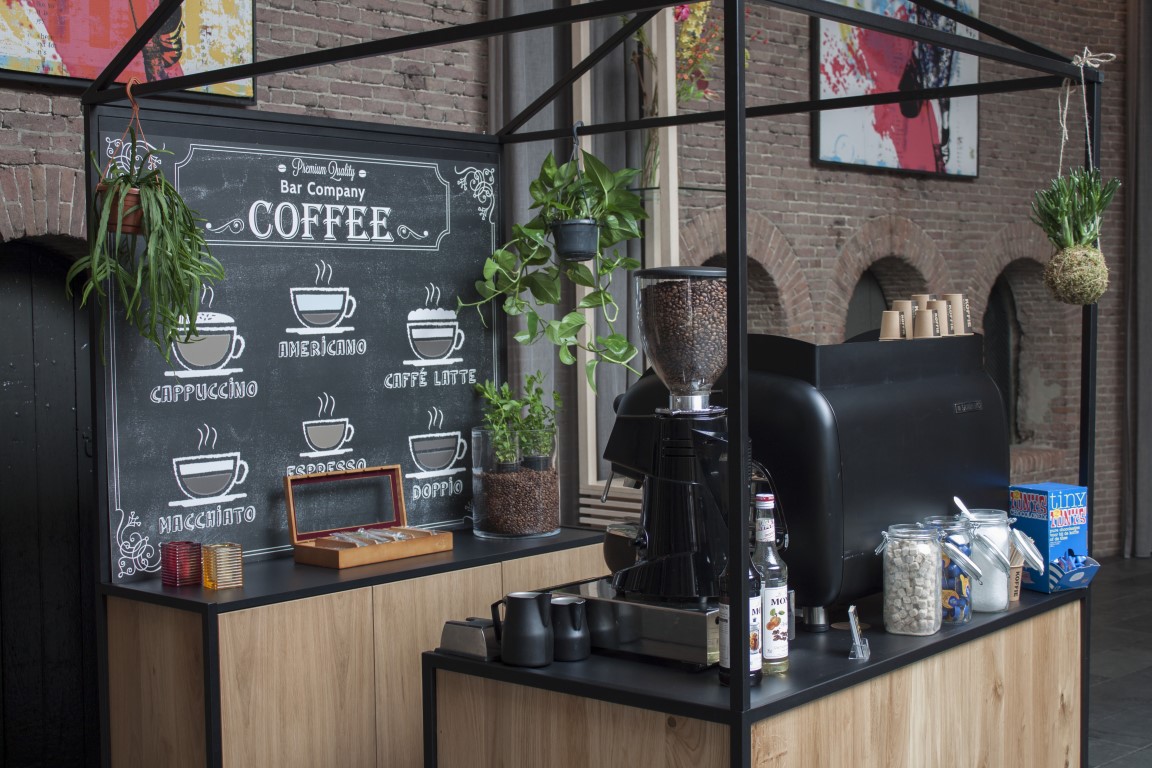 Een koffiebar van Koffiebarhuren.nl heeft de beste koffiemachines, molens en overige benodigdheden. Wij regelen alles voor u van begin tot eind. Zo heeft u nergens omkijken naar en kunt u zich volledig richten op uw evenement. We kunnen de koffiebar geheel inrichten naar uw wens. Het is mogelijk uw naam of logo op de voorkant van de koffiebar af te beelden!